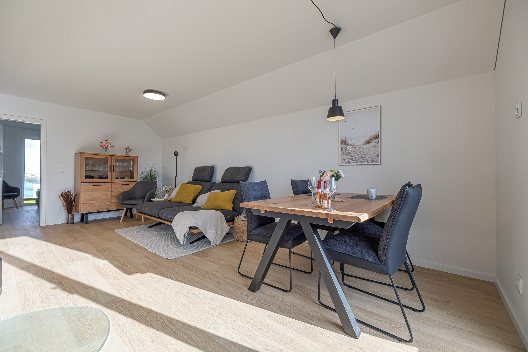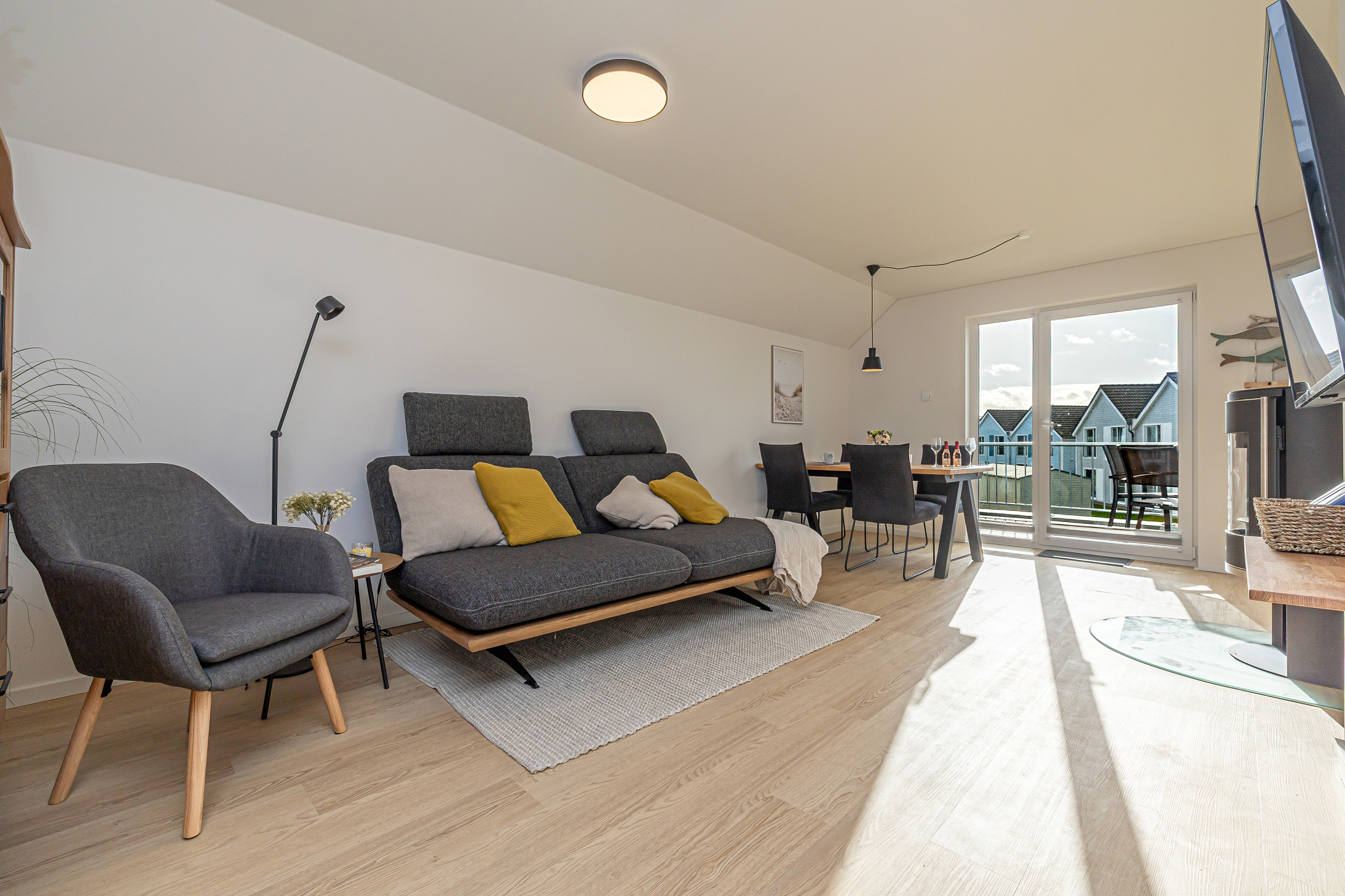 Mit dem Auto direkt vor der Tür parken, Anfahrt unkompliziert (von Norden Kolding, Flensburg B199 oder B201; von Süden Hamburg A7, B201 oder B203). Elektroauto Besitzer kommen in den Genuss der eigenen Ladestelle am Parkplatz der Ferienwohnung. Den Lade-Chip gibt es ebenfalls beim Check-In.